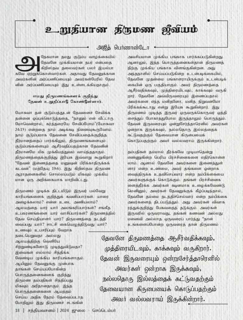 உறுதியான திருமண ஜீவியம்